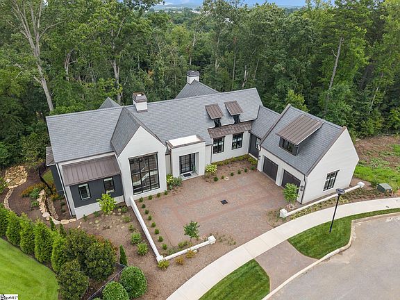This stunning new custom home blends timeless elegance with modern luxury across three spacious levels, featuring 5 bedrooms, 5 full baths, and 1 half bath. Designed in a sought-after transitional style, the home showcases a concrete plank and brick exterior, impeccable craftsmanship, and high-end finishes throughout. The main level offers a true chef's kitchen complete with built-in microwave, wall oven, gas range with vent hood, dishwasher, disposal, refrigerator, large walk-in pantry, mini fridge, and kegerator - ideal for entertaining. The kitchen opens to a grill deck with built-in grill and flows seamlessly into the great room with a masonry fireplace and gas logs. A formal dining room adds a touch of sophistication, while the gleaming hardwood floors throughout elevate every space. The primary suite on the main level is a private retreat with its own coffee bar, dual vanities, multiple closets, and a spa-inspired bath with soaking tub and walk-in shower. Also, on the main level are a walk-in utility/laundry room with sink, a 2-car garage, and a screened porch with a raised-hearth fireplace, perfect for relaxing year-round. The upper level features a flexible bedroom or home office with a private ensuite bath. The expansive walk-out lower level includes 3 large bedrooms, each with its own ensuite bath, a dedicated gym/dog room with rubber flooring, and a generous recreation room with wine cellar that opens directly to the covered patio. The outdoor living space includes a cozy outdoor fireplace - perfect for entertaining or quiet evenings at home. From its elegant interior touches to its thoughtfully designed indoor-outdoor living spaces, this home offers the perfect balance of comfort and luxury in one of the area's most desirable communities. All furnishings are included in the listing price!