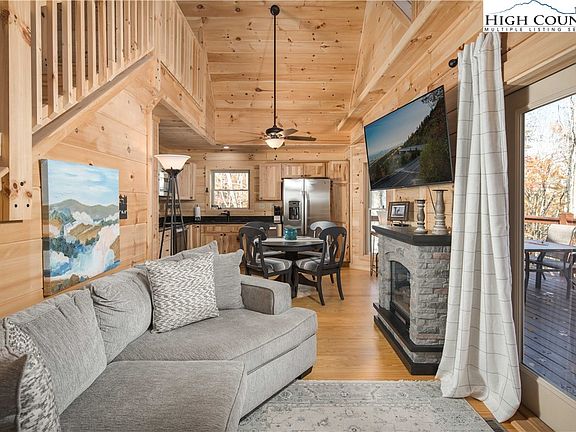 Nestled near Coffey Lake, Beech Mountain Club, and Beech Mountain Resort, this furnished log residence offers an ideal investment or second-home opportunity. Designed for relaxed mountain living, the home features vaulted ceilings, expansive windows that invite natural light, and a generous deck surrounded by mature trees, evoking a treehouse ambiance.