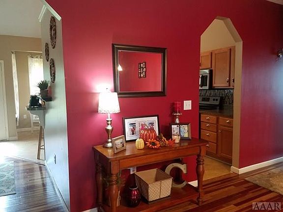 Open-split floor plan.Cathedral Ceilings & gorgeous hardwood flooring.Spacious Kitchen w/eat in bar area, pantry & breakfast nook. Family Room & kitchen are designed to keep family & friends close.Access to deck area from FR.2 beautifully designed bedrooms are on left side of home while the Master Bedroom is quietly located on right. Master has cathedral ceilings,10 panel glass french doors lead to the master bath.Dual vanity,soaking tub,separate shower & large walk in closet.HUGE bonus room. 2 car garage. Lg. bk yard. Centrally located, easy commute to VA/Elizabeth City or the Outer Banks.