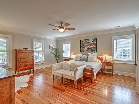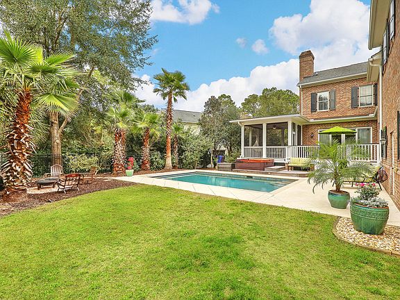 Welcome to Olde Park this all brick, 3 story all brick home offers over 5483 heated & cooled square feet, included on the 1st & 2nd floor, plus 723 heated and cooled square feet on the 3rd for a great flex space. This home is designed with family living, and entertaining in mind. A highly functional and flexible floor plan, and inviting outdoor living spaces which, includes an ipe deck and screened porch overlooking your salt-water pool with built-in retractable cover. The back yard is fully fenced. There are 5 bedrooms, all with their own ensuite baths. Master is on the second floor & the large first floor master can be used as a private guest or mother-in-law suite. The generous, light-filled kitchen features a large center island, stainless steel appliances, and a separate walk-in butler's pantryThe home is wired for sound, has two tankless water heaters and 4 HVAC units zoned by floor. The finished room over the garage with a built-in wet bar makes for a fantastic game room or movie room, and the finished third floor offers even more flex space for your home office, gym, or art studio. This home offers a three car garage (with space for a work bench); additionally, there is a detached garage designed for boat storage. Residents of Olde Park have free access to the nearby boat ramp in I'ON. Olde Park neighborhood features spacious lots, mature trees, beautiful landscaping, ponds, and green space, and all homes meet neighborhood design standards for elegant and classic southern architectural style. Well-maintained with only one owner since it was built in 2006.Give us a call today to make an appointment to see 214 Little Palm Loop!