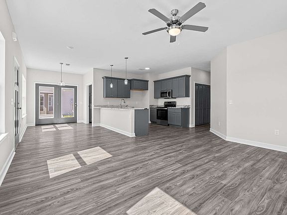 Large center islandSide yardSpa-like bathFrench doorsOpen great room designCommercial-grade vinyl plank flooringTray ceiling
