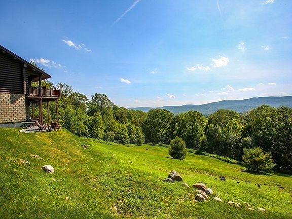 Berkshire County log home on 10 acres affording big sky views. Gaze at Mt Greylock State Reservation from one of your four outdoor gathering spaces including the hot tub or rustic fire pit steps from the 760+ ft of unfinished space in the walkout lower level. Multiple heat pumps for your heating and cooling needs with a back up propane fired hot water boiler heating system ready to be connected. Plenty of solar on the oversized 4 bay detached garage to keep your utility bills low flanked by an oversized firewood shed for the fireplace insert in your great room. This custom 3 bedrooms, 2 full bath log paradise offers an open floor plan for entertaining or just easy living. The perfect mountainside retreat moments from North Adams and Williamstown or a short drive to all things outdoors from white water rafting, fishing or hiking!Only 3 hours from the George Washington Bridge/NY or Boston!