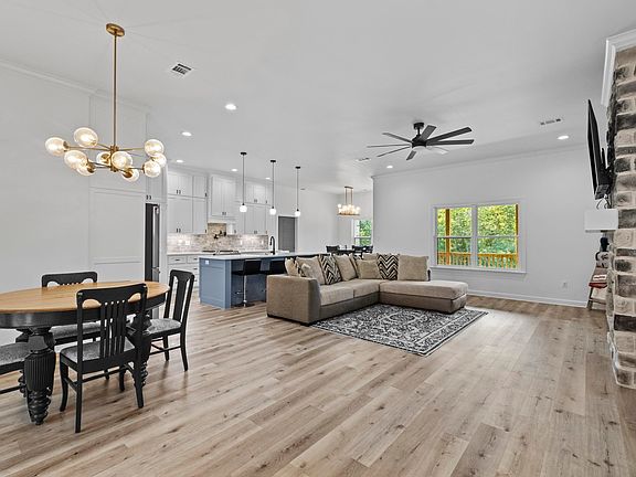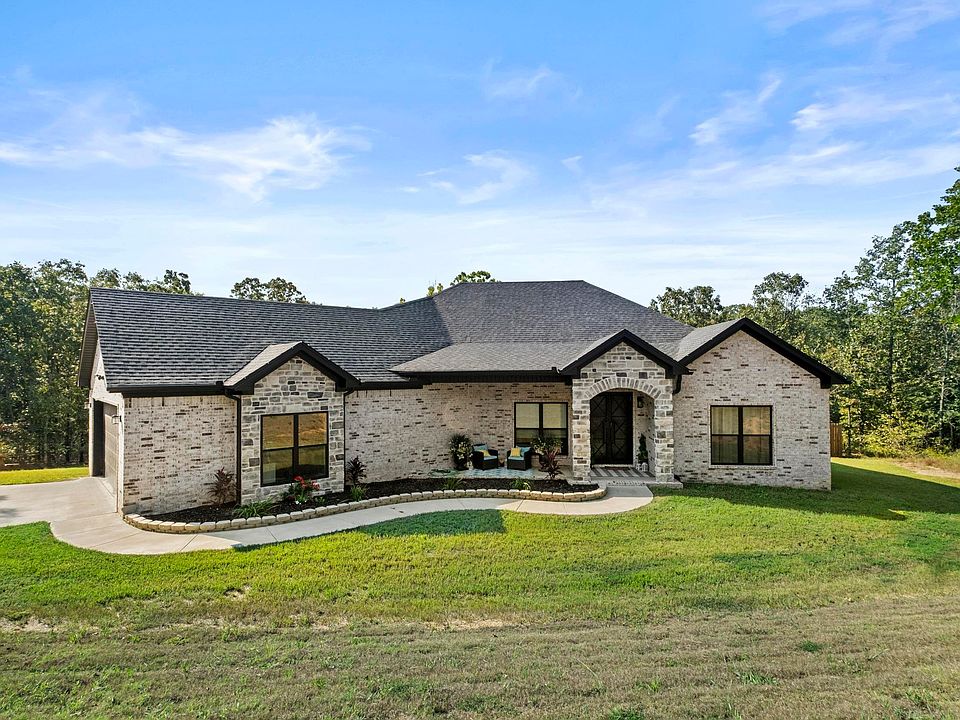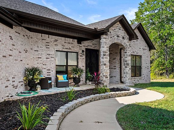 Welcome to this Stunning 2,300 sq. ft. brick home, Built in 2023 and set on 2.3 Beautifully landscaped acres in a Gated community. From the Moment you arrive, the Rock column entryway and custom Iron front door make a Bold first impression, setting the tone for the Quality and detail found throughout! Inside, the open floor plan Flows across Luxury vinyl plank flooring, anchored by a Stone fireplace and elevated with Stylish fixtures. The chef’s Kitchen is both functional and Elegant, featuring Gorgeous countertops, a Hidden walk-in pantry, Microwave drawer, Pot filler, and a Spacious eat-in breakfast bar. The luxurious Primary suite feels like a Spa retreat with a Soaking tub, Huge walk-in shower, and Designer touches throughout. Thoughtful details continue into the Laundry room, where you’ll find a Convenient sink, Stylish tilework, and Smart design that makes daily tasks easier. Step outside to enjoy your mornings or evenings on the covered Patio, overlooking your Private, tree-lined Acreage. This is more than Just a house, its a place to Gather, relax and Create lasting memories. A place to Call home. Priced below appraised value! Book your showing today! Agents see remarks.