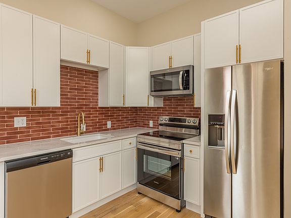 Inside, you'll find tall windows that flood each unit with natural light, highlighting the open layouts, warm wood flooring, and designer touches throughout. The kitchens are equipped with new stainless-steel appliances, stylish cabinetry, and plenty of counter space. Living areas are thoughtfully designed to blend comfort and style, making them perfect for both relaxing and entertaining.