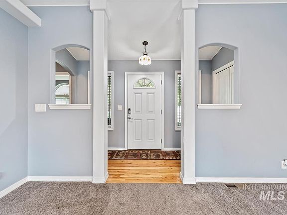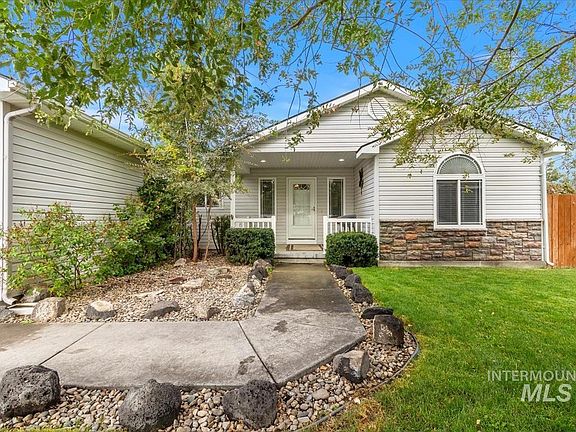 Tucked at the end of a peaceful cul-de-sac on a spacious ¼-acre lot, this home is a rare find having NO HOA fees, RV/boat parking, and space for all your toys without paying for storage! Built in 2005, this 3-bed, 2-bath home spans 1,618 sq ft with hardwood floors, wainscoting accents, and vaulted ceilings creating an inviting, open feel. The kitchen with stainless steel appliances, has a breakfast bar, pantry, and a great amount of storage! The primary suite offers a walk-in closet, his and hers vanities, walk-in shower, and a soaking garden tub—your own private retreat! Two additional bedrooms provide flexibility for guests, an office, or hobbies. Step outside to a large raised deck overlooking a spacious fenced backyard—a true outdoor retreat complete with young fruit trees, garden beds, and a storage or gardening shed. There’s plenty of room to entertain, relax, or simply enjoy the open air in your own private haven. The 3-car garage and wide side access make parking easy for your RV, boat, &/or trailer etc. Located in a quiet, sidewalk-lined neighborhood just a 2-minute walk to Legacy Park, near schools, shopping, and dining—plus only 20 minutes from Mountain Home Air Force Base. Spacious, well cared-for, and impossible to find at this price—this one’s worth moving fast for! Please click the tour link and see the 3D tour and park photos.