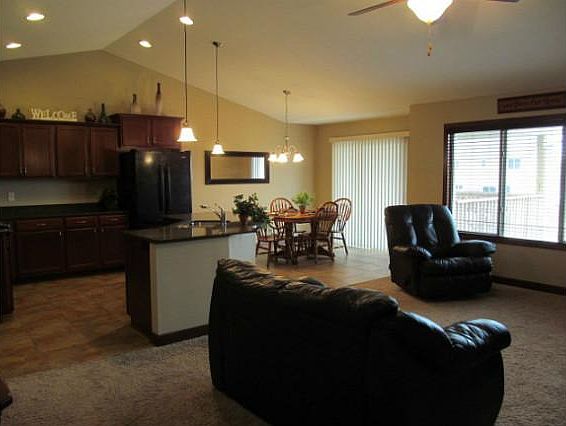 Must come check out this like new ranch. This over 2400 ft ranch is 4 BR (1 in Basement) 3 full bath. Open floor plan with vaulted great room, large kitchen island with granite countertops, tile floors in kitchen and dining area. Large Master suite with double vanity and walk in closet. Walkout basement features large family/game room, bedroom 4 and full bath, area for wet bar all stubbed and ready to go for future. Enjoy the covered deck or patio while watching friends and family in back yard enjoying the security of a 6' fence. Other upgrades include 5/8 roof sheathing, insulated garage, water softener, whole house humidifier, insulated ceilings in basement, custom blinds and newer dishwasher all of this and much more.