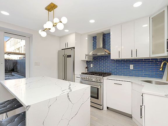 This townhouse boasts a luxurious owner's duplex, a finished basement, and ductless air-conditioning in each room, providing you with all the comforts of modern living. As you step inside the garden level, you'll be impressed by the elegant living room that flows seamlessly into the dining area and a chef's kitchen. The quartz kitchen island top, beautiful panel cabinets, and stainless-steel appliances make cooking and entertaining a pleasure. You'll also find a powder room and sliding doors that lead to a beautifully paved backyard, perfect for outdoor dining or relaxing.