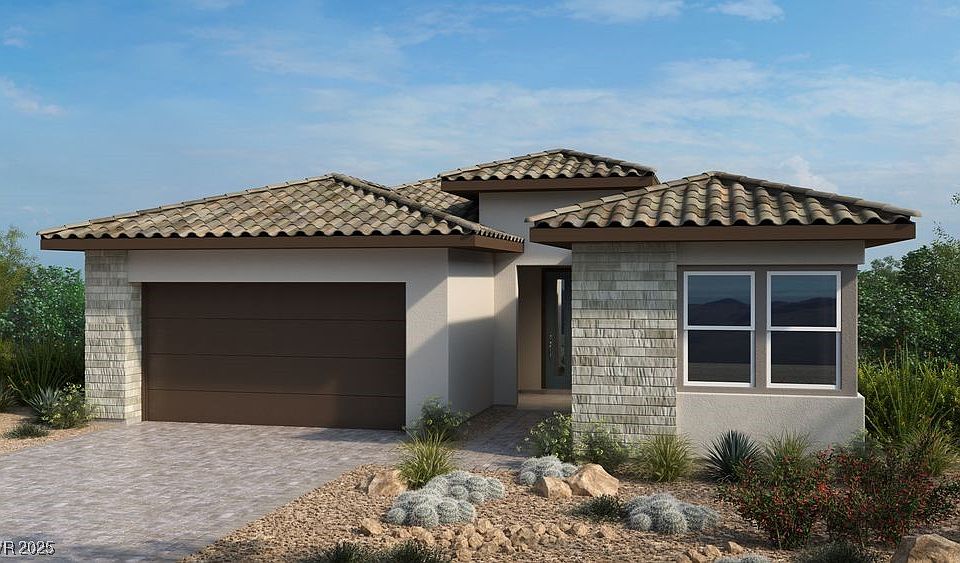 New Construction – September Completion! Built by America's Most Trusted Homebuilder. Welcome to the Amaryllis at 214 Piazzetta Place in Verona at Lake Las Vegas. This single-story home offers 3 bedrooms, 2.5 baths, and a spacious open-concept design. A welcoming front porch leads to an elegant foyer, with two secondary bedrooms and a full bath just off the entrance. The great room, dining area, and chef-inspired kitchen flow together seamlessly and feature upgraded cabinets, quartz countertops, tile and carpet flooring, a stylish backsplash, and a GE Profile double oven. The luxurious primary suite includes a walk-in closet and spa-like bath with a walk-in shower. Enjoy quiet mornings on the covered patio, plus added convenience with a 3-car tandem garage and laundry room. Additional Highlights include: 12' stacking glass door, extended primary shower, 220v charger prewire for future car charger. Photos are for representative purposes only.