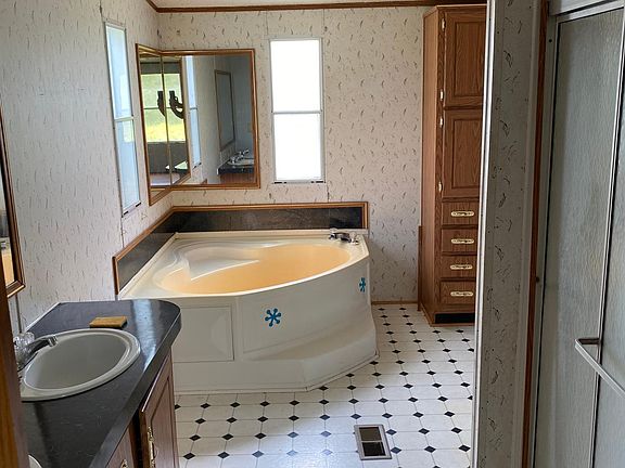 Doublewide 3 bedroom, 2 bath home open floor plan, large kitchen- includes refrigerator, stove and dishwasher. Laminate floors throughout the house. Master bath is large with garden tub. Master bedroom has walk-in closet. Front and back covered decks and has Storm shelter. We accept Section 8. If you're interested in this home call (if no answer please text me and I'll call you back.