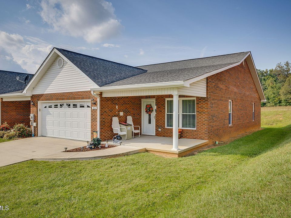 Welcome to 214 Planters Row, a beautifully designed custom-built two bedroom, two bath condo offering comfort, an open floor plan, and convenience all on one level. With no steps throughout, this home is thoughtfully crafted for ease of living and modern appeal. The custom kitchen features elegant cabinetry, a stylish backsplash, and a large pantry, perfect for storage and meal prep plus all the kitchen appliances remain. The hardwood flooring has a 50 year finish and it flows seamlessly through the main living areas, while the bathrooms are finished with durable LVP flooring. Both bedrooms include walk-in closets, providing ample space and organization plus all the walls are soundproof. Enjoy wide, open spaces with an oversized hallway and doorways, enhanced by recessed lighting and crown molding for a touch of sophistication. The home also boasts a spacious laundry area and a whole-home humidifier, ensuring year-round comfort. With the number of windows you will find plenty of natural lighting with all vertical blinds remaining. The home also has an attached two car garage and a covered front porch to enjoy the mountain views. This thoughtfully designed condo is move-in ready and offers low-maintenance living in a desirable Greeneville location convenient to shopping, restaurants, medical facilities and more.