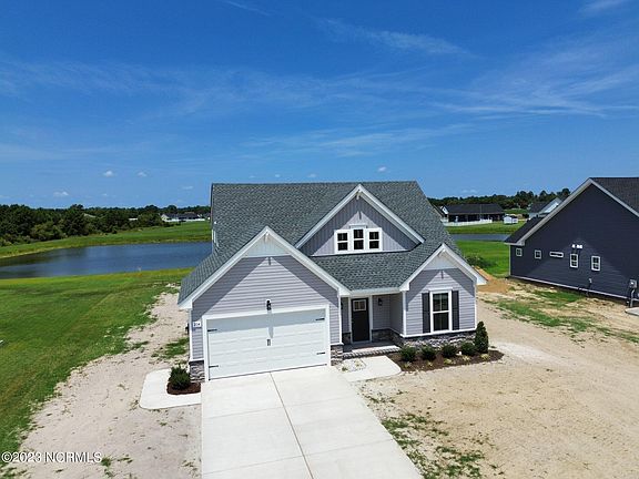 Welcome to this exquisite newly constructed home on a premier pond front lot, where an open floor plan awaits you, complemented by a main level bedroom and a full bath. The great room, complete with an electric fireplace, sets the stage for delightful gatherings and seamlessly connects to the gourmet kitchen, which boast stainless steel appliances. Upstairs, the primary en-suite is a luxurious retreat featuring not just one, but two walk-in closets, two separate vanities, and a spacious walk-in shower. Additionally, the second floor offers two more bedrooms, another full bath, and a conveniently located laundry room. Prepare to be captivated by the possibilities and envision your dream home come to life. Neighborhood amenities include boat ramp with access to Pasquotank River! Closing Cost Assistance with use of preferred lender and attorney!