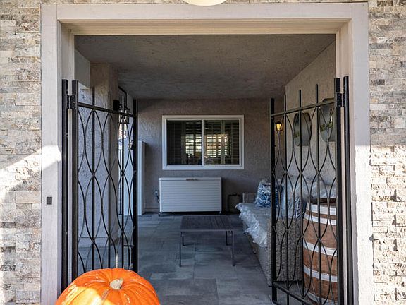Beautifully upgraded and perfectly positioned on a corner lot, this home delivers privacy, function, and undeniable style. The custom stacked-stone facade and gated entry create inviting curb appeal, while inside, natural light fills open living spaces finished with engineered beautiful wood floors, crown molding, recessed lighting, dual-pane windows, and a soft neutral palette. The main level has been reimagined for elevated living. A kitchen wall was opened to create seamless flow into the living areas, now highlighted by a stylish built-in hutch and buffet for added storage and entertaining. The updated kitchen offers white quartz countertops, custom cabinetry, stainless steel appliances, and a charming garden window overlooking the entertainer's backyard. A formal living room with fireplace, a comfortable family room, a downstairs bedroom, a guest bath, and an indoor laundry room provide convenience and versatility. Upstairs are three inviting bedrooms, each with rich wood flooring that brings warmth and continuity. The generous primary suite features an extra sitting area with built-in wardrobe storage, a walk-in closet with barn-style door, and a private Balcony showcasing serene mountain views. The upstairs bathroom has been tastefully renovated with striking blue patterned tile that adds character and charm. The backyard is an entertainer's dream, complete with manicured landscaping, a Pebble Tec pool with Baja shelf and spa, and a custom pavilion with exposed wood beams--ideal for hosting or unwinding under California evenings. Newly installed concrete pavers with a modern slate finish extend from front to back, creating a unified, resort-style feeling gives every reason to never leave home. All of this in a peaceful neighborhood near hiking trails, a quiet park, The Oaks Mall, award-winning schools, and easy 101/118 freeway access but without the noise.