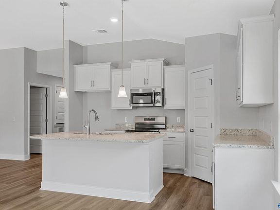 Move In Ready! Step into this stunning 1,525 sq. ft. home featuring 3 spacious bedrooms and 2 luxurious bathrooms. Designed with both style and comfort in mind, this home boasts modern LVP flooring throughout, seamlessly blending durability with elegance. The spacious owner's suite offers a walk-in closet, dual vanity sinks, and spacious garden tub and separate shower. The gourmet kitchen is a chef's dream, showcasing gleaming granite countertops and ample space for entertainment. Whether you're hosting guests or relaxing with loved ones, this home offers the perfect combination of functionality and beauty. Only a short drive to Downtown Huntsville and Redstone Arsenal!