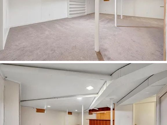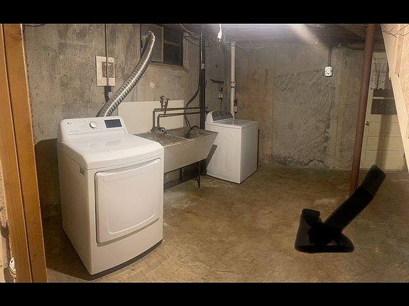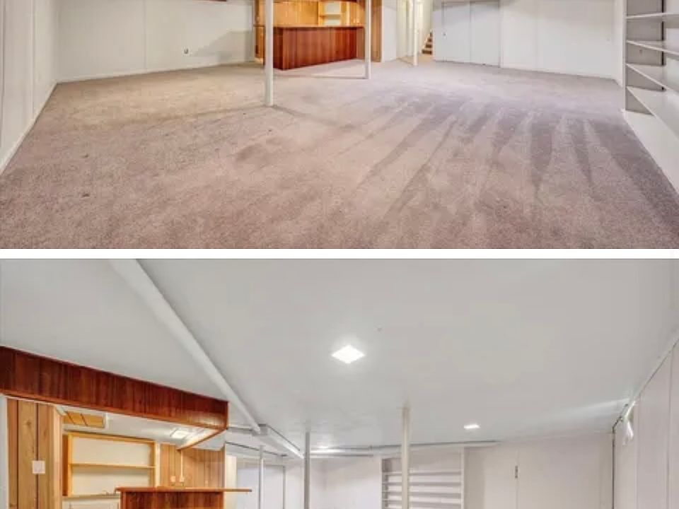 Basement studio apartment: 830 sqft., has a wet bar, with cabinet space, has a full bathroom, separate entrance through the basement door, that I would have access to as well for shared laundry usage. But your space has its own accordion door. Kitchenette: a fridge, microwave, double burner plug in stove top and an air fryer, and dish drying rack. (Utilities - Water, Electricity, Internet, Trash - are included in the rent.)