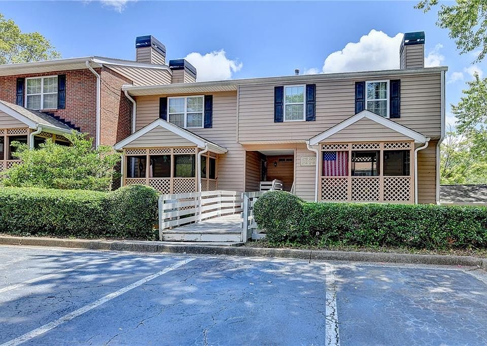 This condominium is located in the Martin Lake neighborhood within the Martin's Landing community. Upon entering, you’ll find a neutral color palette. The fireside family room is filled with natural light boasting a brand new patio door, opening to a front deck area with freshly painted flooring—perfect for quiet moments or entertaining. The laundry closet includes cabinet storage. The kitchen features stained cabinetry, solid surface countertops, a gas cooktop and oven, a microwave, and a cozy eating area. Off the kitchen, there is another covered deck area with an exterior storage closet, just steps away from parking. The bedroom is bright with natural light and includes a generous walk-in closet. Martins Landing offers fantastic amenities, including walking trails, a community lake, various pools, and tennis courts. Convenient to shopping, restaurants and Georgia 400. *Some images have been virtually staged.*