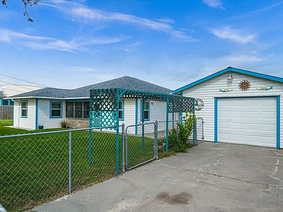 This Rockport cottage has it all! Effectively rebuilt. Literally EVERYTHING is new & beautiful. Spacious open floorplan loads of natural light. Kitchen boasts stainless steel Whirlpool appliances, custom soft close cabinetry with spice racks and pullout shelves. Huge island w eating bar + sunny breakfast area. Extra interior spaces could be used as formal living, formal dining, Indoor bar area or office space. The fine attention to detail is evident in the master bedroom w custom ceiling treatment, back porch access and opulent en-suite! Tiled walk-in shower and molded glass double sinks, even a built-in makeup vanity! Second bedroom is extra-large & bath 2 has tile shower, double vanities. Huge outdoor area feels like private oasis, fully 6' fenced. with double driveway for plenty of toy parking plus detached garage. Space to enjoy the outdoors, screened front porch, covered back porch, tiki bar/bbq area. Short term rentals/RV's OK, minutes from beach, boat ramps & epic shopping!