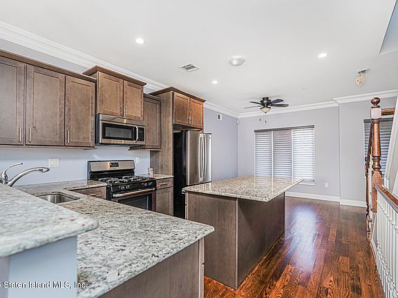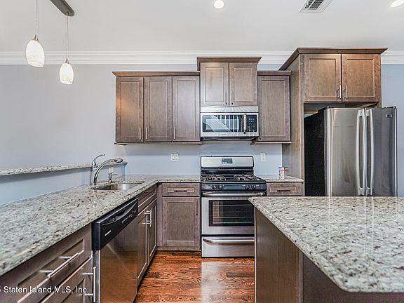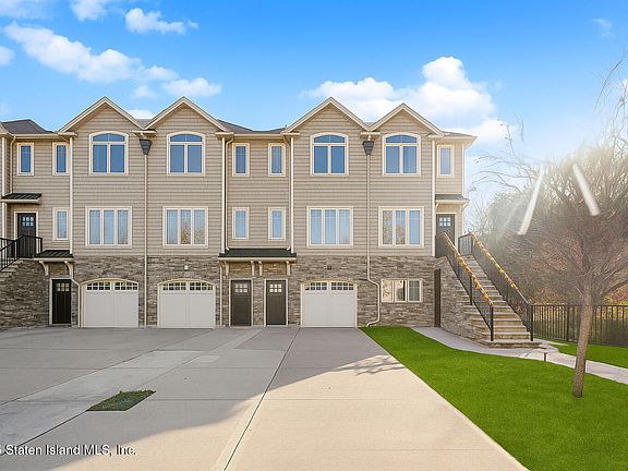 Welcome to 214 Roman Avenue, a gorgeous, modern single-family townhome offering the perfect combination of style, comfort, and convenience. This beautifully designed residence features 3 bedrooms, 3 bathrooms, and an open, airy layout highlighted by 9-foot ceilings, large windows, and gleaming hardwood floors throughout. The main level showcases a custom kitchen with granite countertops, stainless steel appliances, and elegant crown molding, flowing seamlessly into a bright living and dining area ideal for entertaining. Upstairs, you'll find spacious bedrooms and modern, spa-inspired bathrooms finished with top-of-the-line materials and fixtures, The ground level has access to the backyard and can be used as additional recreation space or additional bedrooms. Enjoy outdoor living in your private backyard complete with an above-ground pool, or take advantage of the long multi-car driveway offering ample parking. This sought-after community is nestled next to a serene natural preserve, featuring a scenic pond and walking trails, perfect for peaceful strolls and relaxation. The HOA includes - Pond Maintenance, Snow Removal on common areas, Lighting in common areas, 2 parking spaces, landscaping on common areas, Insurance for common areas, and Property tax for common areas. Conveniently located near public transportation to NYC, schools, parks, shopping centers, and restaurants, 214 Roman Avenue offers the best of Staten Island living in a truly picturesque setting.