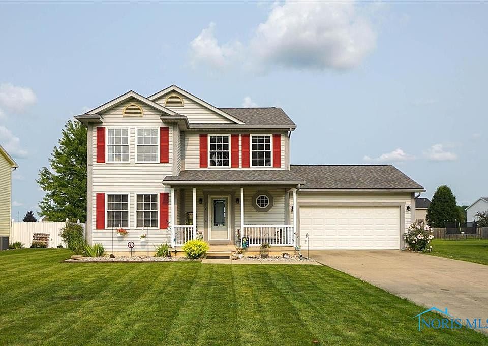 Great small-town location near the schools. Enjoy the full country porch on this 2 story home! 4 beds, 1.5 baths, 832 sf full basement (just needs flooring to be finished). Eat-in kitchen makes it possible to repurpose the formal dining room, if desired. All SS kitchen appliances stay. Oak Cabinets. Plenty of storage. Tilt out windows, 6 panel doors. Large privacy fenced yard. New Sump pump-2023, 50 yr. Roof w/transferrable warranty-2022, Water heater & furnace-2014. Minutes from Findlay or Bowling Green with easy access to I-75.
