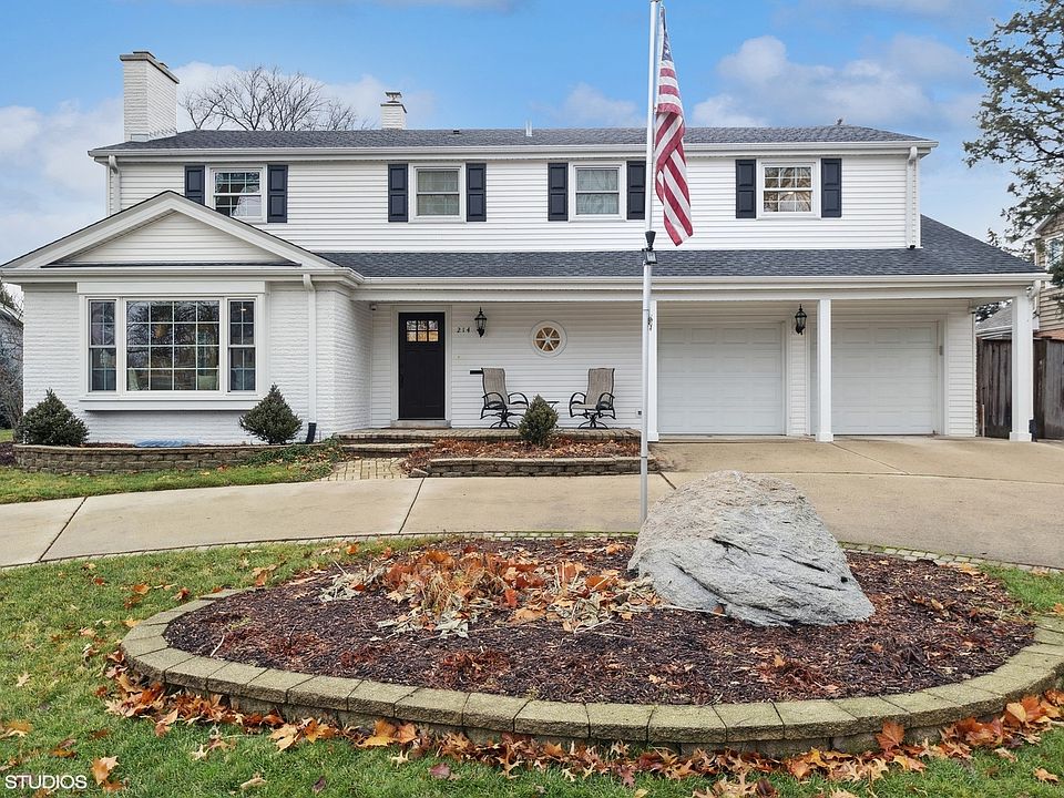 This Springdale property with circular drive and beautiful views will not disappoint! In 2018 it underwent extensive updates and upgrades making this a truly move in ready home. The improvements include a kitchen remodel, ALL NEW WINDOWS and window treatments, hardwood floors added to main level and staircase, primary bath remodel, recessed lighting, paint AND MORE! The main level features a living room with a wood burning fireplace and a first floor family room looking out to the back. The eat-in kitchen is equipped with a breakfast bar, island with seating and is adjacent to the dining room. The attached 2 car garage with extra storage space is a bonus. Large closet near the garage entrance is the perfect mudroom area or pantry. FIVE very generous bedrooms create the second level giving the opportunity to utilize one or more for private office space. The basement rec room is cozy with its own wood burning fireplace and plenty of space for watching the game, playing games or just relaxing. Check out the exercise area adjacent to the laundry room- great bonus space. A wide 80' property has a fabulous yard looking out onto the Lyons Township High School fields, providing wide open views. Take a dip in the hot tub year round or relax on the brick paver patio (both 2017) admiring the colorful perennial gardens during the warmer months. This home has been lovingly occupied and maintained for 32 years by the sellers! Bryant furnace and A/C condenser 2015, Roof approx 2006, hot water heater 2019. Don't miss the opportunity to see this special Springdale home!