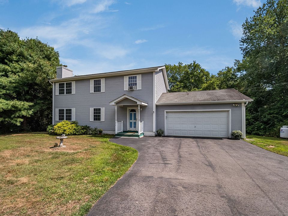 Built in 1998, this 2 Bedroom, 2 full bath Colonial with 2-car garage sits on over an acre with pond views. Eat-in kitchen with sliders to a small deck, open floor plan for living room and dining area and a first floor bathroom with shower. Upper level has 2 large bedrooms and a family room with laundry area. The Primary bedroom has a large walk-in closet and direct access to the full bathroom. This property includes a whole house generator. Schools, shopping and many conveniences located nearby. Please note - all appliances are "as is" and dishwasher does not work.