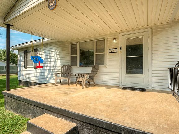 3,000 IN CLOSING COSTS OFFERED WITH PREFERRED LENDER!! This home also qualifies for 0% down payment with the USDA loan program! Welcome home! This adorable bungalow-style home is a perfect blend of function and charm. The two bedrooms are spacious and both have large closets. The living flows effortlessly into the dining and kitchen area. The kitchen has a massive island perfect for prep or for folding laundry with the washer and dryer located within the kitchen. A new HVAC unit was put in August 2024. The attached garage can easily fit two vehicles or is a great hangout area with electrical outlets and a window unit. This home sits on 4 city lots giving you plenty of space in the backyard to expand or create your own backyard oasis. The storm shelter provides peace of mind during our storm months. Located on a quiet street in Shawnee, this home has it all!
