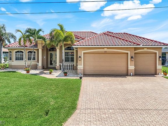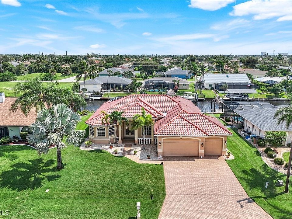 Spacious Gulf-Access Pool Home in the Heart of Pelican — Move-in Ready & Competitively Priced!!! Welcome to your Gulf-Access pool home in the highly desirable Pelican area of SW Cape Coral. This spacious 3-bedroom, 2.5-bath plus office home offers nearly 2,500 SQUARE FEET of living space, combining comfort, versatility, and the easy coastal living Cape Coral is known for. With its SOUTHERN REAR EXPOSURE, Boating Access, and Prime Location near Shopping, Dining, and Beaches, it’s a standout opportunity for anyone seeking the Best of the Florida Lifestyle! The open-concept great room design highlights vaulted ceilings and 10-foot sliders that bring in abundant natural light and create a smooth flow between indoor and outdoor living spaces. The kitchen was designed for real-life use, offering generous counter space, a center island with prep sink, walk-in pantry, solid wood cabinetry, and stainless-steel appliances—ideal for entertaining or everyday meals. The primary suite feels like your personal retreat, with a cozy sitting area, illuminated tray ceiling, and dual walk-in closets. The ensuite bathroom includes dual vanities, built-in make-up vanity, a relaxing soaking tub beneath arched windows, and walk-in shower with bench and niche. Two additional large bedrooms share a full bath, and the large office off the main living area can easily function as a fourth bedroom, featuring coffered ceilings and direct slider access to the lanai. Step outside to a covered dining area and open space for sunning. The free-form pool and spa area is a showpiece, surrounded by interlocking pavers (matching the driveway), framed by mature landscaping, and enjoying a southern rear exposure — ideal for soaking up Florida’s sunshine all day. Boaters will love the composite dock with captain’s walk and a 13,000 lb lift, giving you quick access to the Gulf. Additional features include a 2023 tile roof, a three-car garage with an air-conditioned storage closet, and a well-maintained interior that reflects pride of ownership. The Pelican neighborhood offers a convenient central location just 2.5 miles from Rotary Park and Four Freedoms Park, less than 5 miles from Tarpon Point and Cape Harbour, and within easy reach of Fort Myers and area beaches. Move-in Ready and Priced Right, this home delivers the best of Cape Coral living—space, sunshine, and a waterfront lifestyle that’s ready when you are. Don’t miss your chance to make it yours!