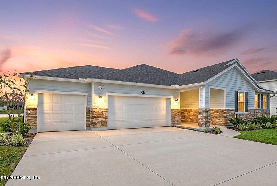 Everything is done for you in this STUNNING, like new waterfront home situated on an 85' wide lot with fabulous SUNSET VIEWS! Split bedroom floorplan PLUS an extra flex room! TONS of upgrades inc. a whole house water filtration system, upgraded 42'' cabinets w/trim & hardware, pendant lighting, large island with breakfast bar, S/S appliances, ceiling fans, blinds, upgraded lighting, high ceilings, fully upgraded baths, wood laminate flooring and quartz countertops throughout. Beautiful French doors lead to the extended covered patio overlooking the serene pond and fountain. 3 car extended garage with keypad, Shark coating, plumbed for a sink. Ring doorbell inc. The Primary bedroom closet has an in wall safe! IMMACULATE and move in ready with BUILDER WARRANTY, Friendly Community with monthly get togethers! Large Community pool, golf club, playground, tennis courts, pickleball, private fishing pier and events at The Riverview Club. This is an entertainer's paradise you won't want to mi Close to the beaches, shopping, restaurants and the Historic district of St. Augustine!