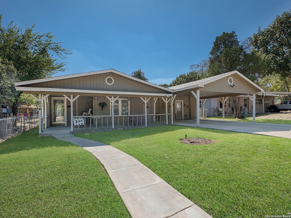 Charming 3 bedroom, 2 bath home in a great San Antonio location right between I 10 and Loop 410. Inside, you'll find granite countertops, custom made maple wood cabinets, and a huge game room perfect for entertaining. Enjoy large covered patios in both the front and back, a two car carport, and a spacious backyard with a storage shed, ideal for relaxing or hosting. With no HOA, schools within walking distance, and just 10 minutes to the airport and downtown, this home offers the perfect combination of charm, comfort, and convenience. Schedule your showing today!