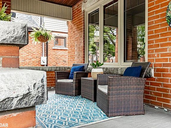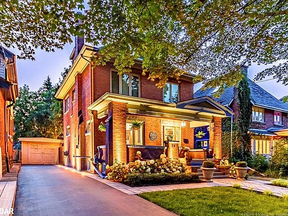 Graced with modern updates & features, coalescing the quality of the past, this timeless beauty harmoniously blends new & old. Youre welcomed by custom oak cabinets throughout the main floor with integrated lighting, Valour gas fireplace with a 100 yr old repurposed chestnut mantle & heated foyer tile floor. The heart of the home, the kitchen, hums with warmth. Where stoves of the past once simmered, now sleek countertops gleam, & copper fixtures catch the glow of the evening sun. Yet, the soul of the space remains unchanged here, meals are still made with love & stories still shared over the clink of glasses. Enjoy high end built-in appliances such as Liebherr fridge, AEG stove & dishwasher, microwave, warming drawer, gas cooktop, pot filler. The afternoon sunlight shifts across the floors of the sitting room adjacent to the primary bedroom, which boasts a large built-in closet, gas fireplace & a walk out to a balcony at the height of the trees canopy. A functional home office complete with built-in cabinets with a chestnut desk & undermount lighting. Up the stairs again we go, where sloped ceilings tuck away quiet dreams, modern comforts whisper softly sleek fixtures & heated tile floors bring new ease to bedtime rituals. The basement sanctuary is cozy & perfect for entertaining with the custom maple bar for friends to share a drink at. Ambiance is adding by the uplighting on the shelves & the way it bounces off the round penny backsplash when all other lights are dimmed. Bonus space for exercising & finished laundry room with Quartz countertops is the cherry on top. Professionally landscaped front & back yard, complete with landscape lighting, cedar fence, pergola, hardscaping, water fountain & perennial gardens. Detached garage with room for a car, many storage shelves & 15 amp panel. Many mechanical & functional updates. Everything has been done in this home - just move in & add your story to its history. Full list of upgrades attached. Summer photos 23.