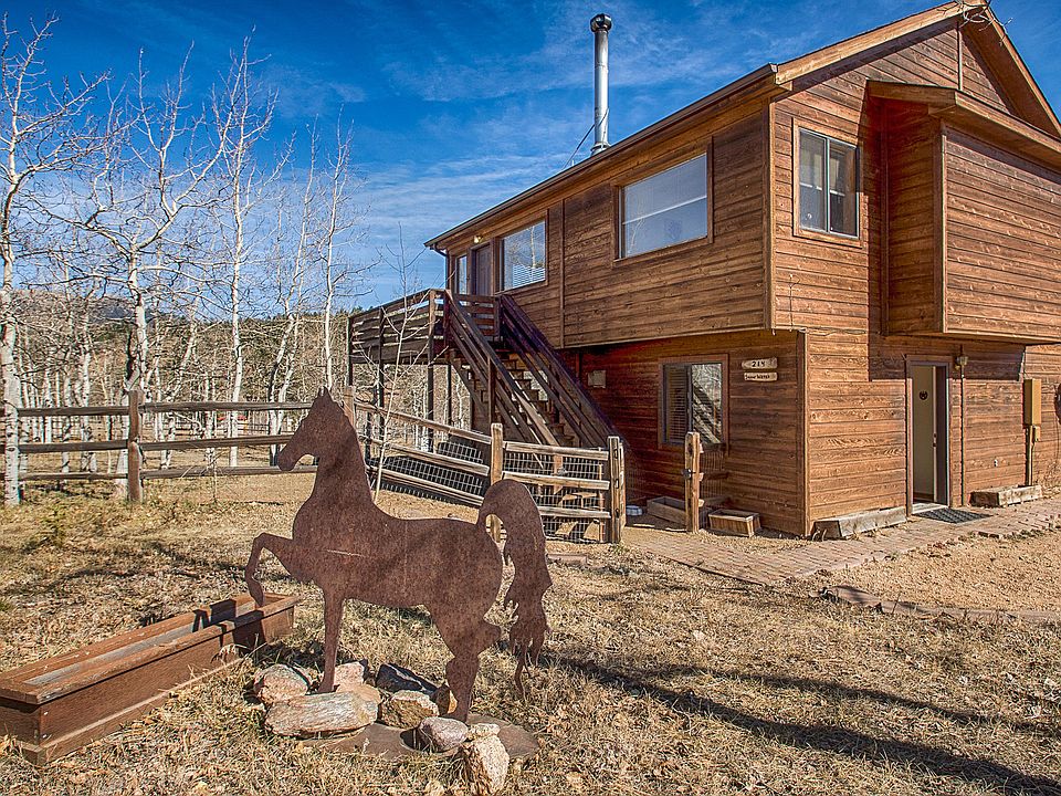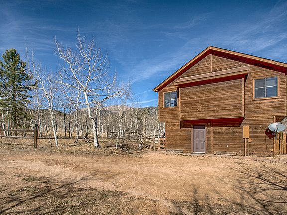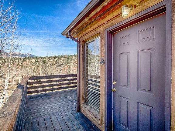 This raised ranch retreat in KZ Ranch Estates provides the mountain appeal in a quiet, cozy setting on .41 acres with a private aspen grove, 3 bedrooms, 2 bathrooms, and 1,608 sq/ft. The main level features an open concept floor plan with vaulted ceilings, hardwood floors, wood burning stove and oversized windows to take in the mountain views. The kitchen features matching appliances and a large pantry for storage. Enjoy the large master bedroom with a 4 piece en-suite bathroom and a river rock gas fireplace. Relax or entertain on the expansive deck, while enjoying the abundance of mountain wildlife and views. You can walk to Pike National Forest for observing nature, hiking and biking trails. Close access via Highway 285 to Pine Junction, Conifer, Evergreen and Downtown.