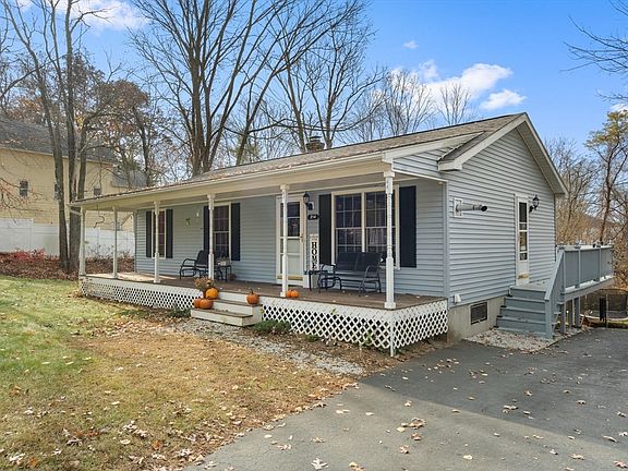 Upon approaching this lovely ranch, you will immediately fall in love w/ the inviting farmer's porch. The exterior has undergone a complete renovation 9 yrs ago, including vinyl siding, a new roof, Pella replacement windows & downspouts ensuring lower maintenance for years to come. Inside you will discover a cozy living environment. This charmer features 3 bedrooms, 1 bath, & a generous eat in kitchen. Warm up during the colder months w/ not one but 2 pellet stoves that add warmth & ambiance throughout the home. A new reverse osmosis system has been added! The expansive newly stained deck wraps around the side & extends 1/2 the length of the house. W/ 200 amp electrical service, a great back yard & the bonus space in the basement, this is the affordable, move in ready home you’ve been seeking. Located close to the Brimfield line, to enjoy easy access to the Mass Pike - Sturbridge, or Palmer, along with convenient proximity to Route 9 for effortless commuting Don't miss your chance!