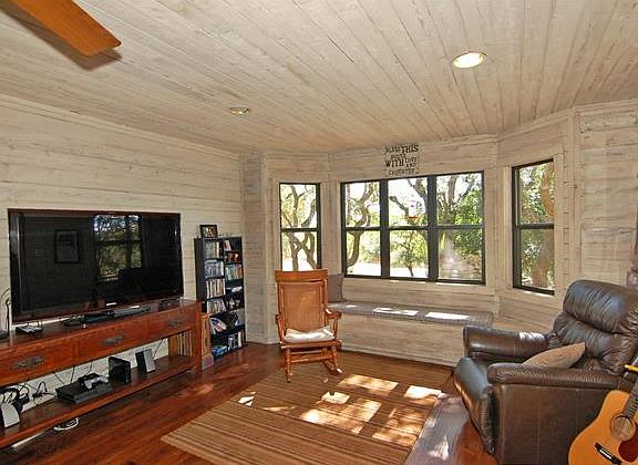 This is it! The fun & quirky "retro-cabin" nestled on 5+ acres in central Dripping Springs' Springlake subdivision. City water! Gorgeous trees, completely fenced & private. The high-fenced pasture area is irrigated. An abundance of storage inside and out. House is unique and has a ton of character...2 beds, 2 baths, flex room, enclosed porch, kit/din, mud room, & large family room plus outbuildings. Property can be sub-divided. No central HVAC, but window/wall units & ceiling fans keep house pleasant!