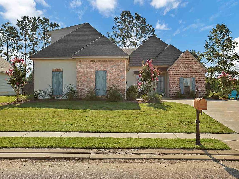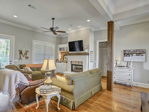 4 bedroom 3 bath home. First floor has open kitchen/living room concept with slab granite counter tops, clear glass cabinets, stainless steel gas 5 burner stove, stainless steel appliances. Formal dining room. Split plan with roomy master on one side with large walk in shower with pebble stone floor, large soaking tub, large walk in closet with storage. Other side of house includes 2 roomy bedrooms with a full bath in the hallway. Pine floors in living, kitchen and master bedroom. Large bonus room/4th bedroom upstairs with full bathroom, office and walk in closet. Backyard has extended patio with beautiful wood burning fireplace, fenced in backyard with established tree line along back of fence. No houses will be built behind this house. House has gas tankless hot water heater and gas heater. House includes security system as well as digital lock on front door which allows for keyless access with code. Garage has 2 separate large storage rooms and plenty of room for 2 cars with room left over. Neighborhood is gated with a pool, playground, green space and pond.