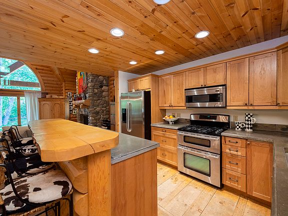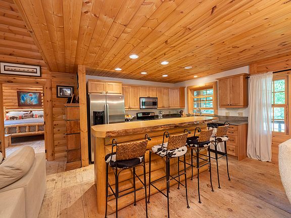 Tucked in alongside the East Fork River on a 1/2 acre lot, this charming log home offers privacy and ease of living with a main floor primary bedroom, spacious great room with vaulted ceilings and river rock fireplace reminiscent of classic Sun Valley charm. An oversized 2-car garage and additional 2 bedrooms plus office/loft upstairs complete the package.