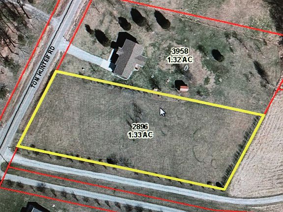 1.33 acre lot. Cleared and 2019 perc test passed up to 4 bedroom house. Property bordered by trees and shrubs in a country setting. Very quiet and peaceful. Will need well + septic. Tile + driveway access already installed. Recent address of 214 Tom Hunter Rd assigned. Restrictions require site built home. Land is beside white mailbox displaying numbers of 196.