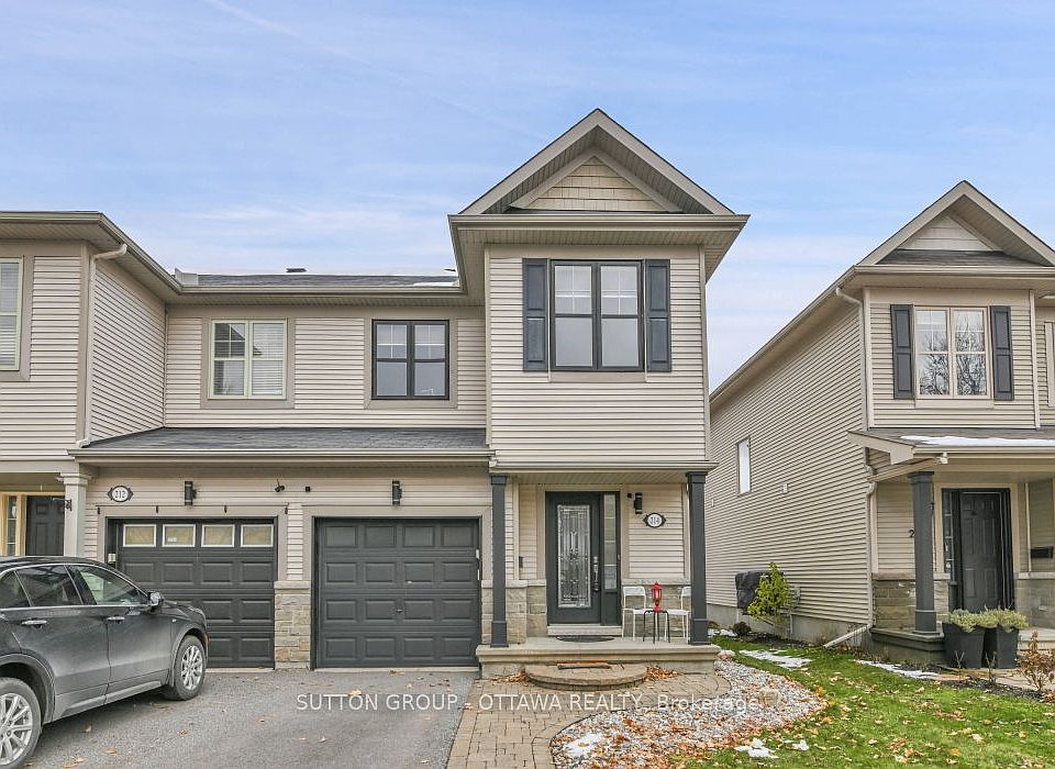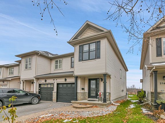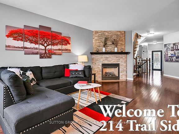 214 Trail Side Circle - End Unit Townhome with No Rear Neighbours in Orleans! Welcome to 214 Trail Side Circle. A stunning end unit townhome nestled in the sought-after community of East Village in Orleans. Located steps from top-rated schools, parks, shopping, and the renowned Millennium Sports Park. This home combines comfort, space, and convenience-perfect for families or first-time buyers. No Rear Neighbours means added privacy and serene views, making this home stand out from the rest. Inside, you'll find the spacious Richcraft Charleston model featuring 3 large bedrooms, 3 bathrooms, and a fully finished basement-ideal for modern family living. The open-concept main floor showcases hardwood flooring throughout and a bright, inviting layout. The kitchen includes granite countertops, stainless steel appliances, a generous breakfast nook, and flows seamlessly into the cozy living room with a gas fireplace-perfect for relaxing evenings. Upstairs, the hardwood continues (excluding the stairs), and the convenient upper-level laundry adds everyday ease. The primary suite is a true retreat with French door entry, walk-in closet, and a private ensuite bath. The finished basement boasts quality laminate flooring and offers ample room for a home theatre, playroom, or home office. Don't miss your chance to own this beautifully maintained, move-in ready townhome in one of Orleans' most desirable areas. Book your private showing today! For more energy efficientency, the sellers have purchased and installed a tankless hot water (2024), newer furnace (2024),heat pump (2024), R60 insulation (2024)