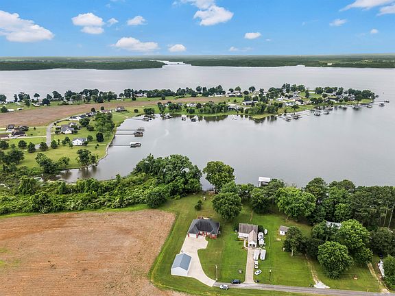 Nestled on Wheeler Lake with 100' of Shore Line Brick Home & Boat House! Lake views from an open great room, fireplace, hardwood floors, breakfast room & kitchen, granite countertops, all appliances. Split floor plans with two primary bedrooms rooms & baths, additional bedroom, guest bath & dedicated office/bonus room. Pantry & spacious laundry room with sink. Double attached garage with storm shelter. Great entertainment on screened porch, two-tiered deck with outdoor kitchen & hot tub. Beautiful level yard with fruit trees. 30' x 40' Metal garage/shop concrete floors, insulated & RV roll up door. Best river view on pier, covered boat, jet ski & paddle boat lift. Level natural sea with riprap & fish cleaning station. Great watersports, fishing or just cruising on the beautiful TN river. Come create wonderful memories!