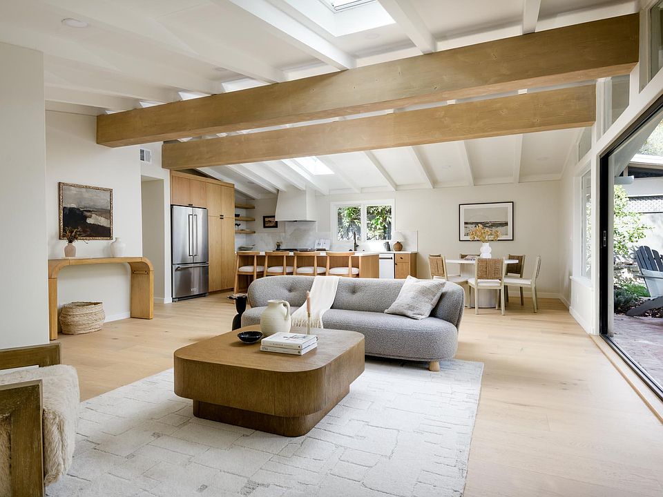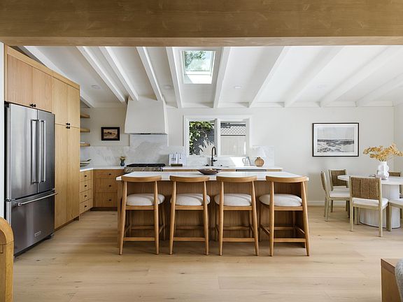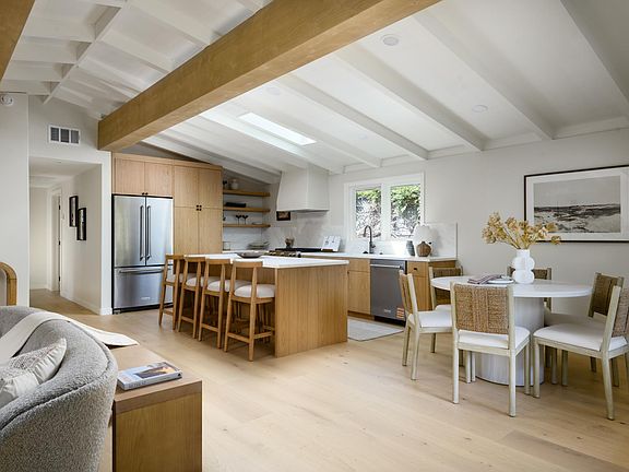 Blocks from Mesa Lane Beach, the Douglas Preserve, and the Mesa's shopping & dining, this fully reimagined 5b/4b residence represents the pinnacle of Santa Barbara's coastal lifestyle. This beautiful residence has been meticulously renovated with luxury finishes, new systems, and thoughtful design. The kitchen is the heart of the home, fully outfitted with brand-new custom cabinetry, premium appliances, countertops, and hardware. Accordion doors create effortless indoor-outdoor flow, while throughout the home, you'll find wide-plank French white oak flooring, wrapped ceiling beams, and a Dutch door adding character. A rare offering that blends modern convenience, timeless craftsmanship, and premier location, this Mesa residence is move-in ready for the most discerning buyer. Natural light pours in through mostly all-new windows and doors, as well as skylights with sun-powered, remote-controlled shades. Designed for effortless indoor-outdoor living, the property features multiple balconies, a rooftop patio with ocean views, an artistic custom wet bar, a living room fireplace, and an outdoor fire pit.