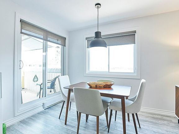 Renovated kitchenUpgraded stainless steel appliancesInsuite laundryElectric fireplaceDedicated dining spaceComfortable balconyOverlooking local greenspaces