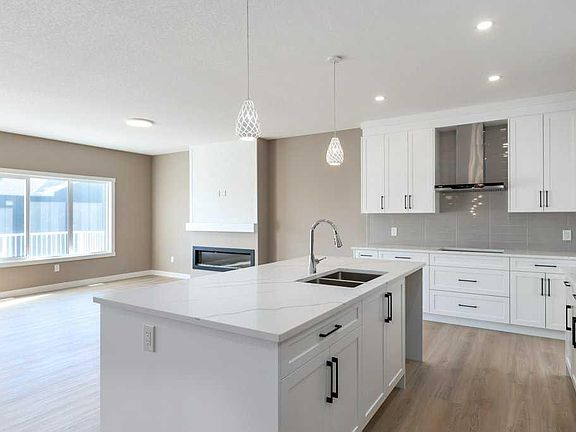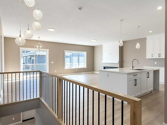 This is a brand new triple garage bungalow with a fully finished walkout basement. It is 1608 sq ft in a great area close to a beautiful waterway and park, and has premium finishes throughout. The main floor is a modern open plan with a wide entry hall, 9’ ceilings, high quality flooring, and a 25’ deck. The kitchen includes cabinets to the ceiling, quartz counters, under-mount sink, select tiles, and a large walk-in pantry. Also on the main floor is the spacious and open living / dining room, the primary bedroom, a laundry room, and a second bedroom or office. Deluxe appointments in the master suite include built in cabinetry in the walk-in closet, a double vanity, a freestanding soaker tub and a 6' shower. The lower level has three more spacious bedrooms and a very big family room with a built-in wet bar, a full bathroom and patio doors to a shady covered patio. All rooms in this home have lots of natural light, and there are many extras including a 8’ island in the kitchen, two fireplaces, and a Hardie board exterior.