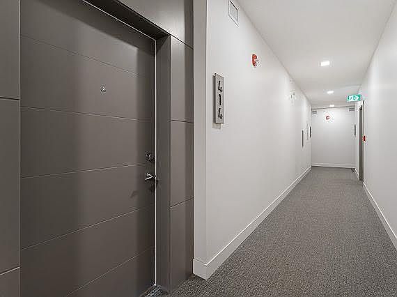 Top floor condoOpen and modern layoutDesigner kitchenQuartz countertopsSleek cabinetryLed tape lightsStainless steel appliances