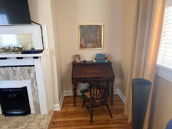 IMPRESSIVE Second floor apartment in the historic Primrose House in Downtown Gainesville. Very professional. This is your opportunity to live in this modern fully remodel apartment. This one 1 bedrooms one bathroom apartment, Included on-site a LG Washer and Dryer, OPEN LARGE KITCHEN with custom veneer cabinet and motion sensor faucet, LARGE Great room with USB port throughout, Wood floor throughout, 2 Fireplace, Travertine in Kitchen and bathroom. Lots of windows. Prime location. Don't miss out on this unique opportunity come view it in person today. Parking on site.