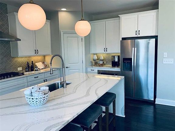 - Kitchen Features: Eat-in Kitchen, View to Family Room, Stone Counters, Kitchen Island, Pantry Walk-In, Breakfast Room, Cabinets White