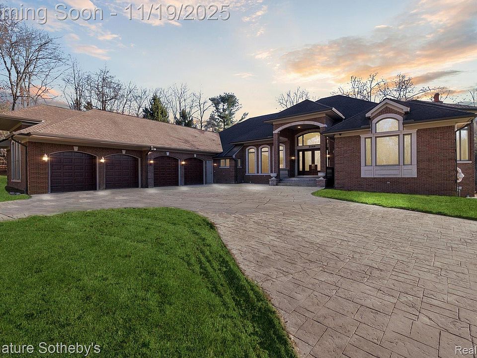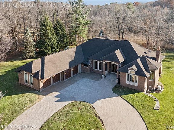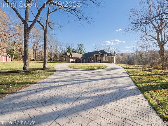 Discover luxury living in a breathtaking, park-like setting in a custom-built ranch with vaulted ceilings, thoughtfully designed for comfort, privacy, and entertaining. Offering over 8,000+ SQFT of finished living space, the house showcases high-end finishes throughout, including Marvin windows, 12+ foot ceilings, arched hallway transitions, custom woodwork, wood flooring, granite countertops, solid-core doors, antimicrobial plush carpet, a 6-person sauna, and a theater room with tiered seating. The primary suite is a private retreat, offering sweeping views of the serene backyard, a cozy fireplace, tray ceiling, an oversized spa-like bathroom, and a walk-in closet. The gourmet kitchen is the heart of the home, featuring double islands with new countertops, bar seating, Wolf double oven, Sub-Zero refrigerator, new sink and faucet, and opens directly to the great room and fireplace w/ access to the four-season sunroom. The entry floor also offers 2 additional, spacious bedroom suites with scenic views, a dining area with a wet bar, tray ceiling, and arched floor-to-ceiling windows, and an office with built-in cabinetry. The finished lower level adds exceptional living space w/ new plush carpeting, second kitchen, bedroom, theater room, sauna, and rubber-floored gym. The 4.5 car garage has built-in cabinetry, EV charger, and basement access. Outdoor space is equally impressive–enjoy the 2.5-acre lot surrounded by nature + private patio with fireplace, and covered terrace. This home has been meticulously maintained and comes with various other recent upgrades, including: new Chelsea Plank hardwood flooring, new furnaces, boiler, hot water tank, water filtration system, insulated Clopay garage doors, fresh paint indoors and outdoors, gutters, light fixtures, exposed aggregate trim on the driveway, and new smoke/carbon monoxide detector combos throughout. A truly exceptional home inside and out—move-in ready, luxurious, and designed to impress.