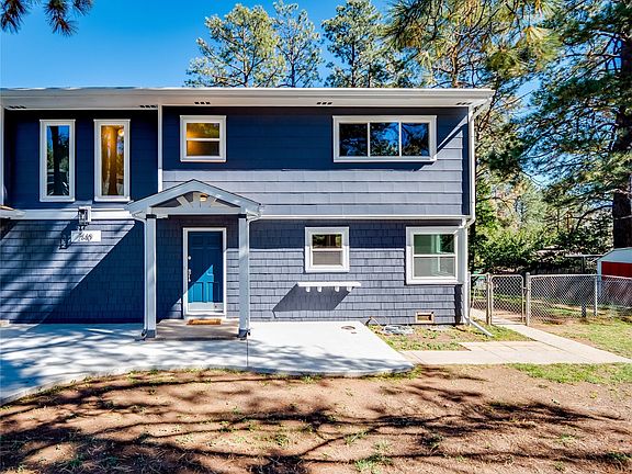 This beautifully renovated modern two-story home is located in the desirable N Community neighborhood, just seconds from Urban Park, schools, and scenic trails. Dedicated parking spots at street level provide convenient access before you head down the stairs into the inviting front yard surrounded by mature trees and lush green grass. The freshly painted blue exterior gives this home a cheerful curb appeal that welcomes you in. Step inside to find brand-new flooring flowing throughout the home and a bright, open concept living and dining space designed for both comfort and entertaining. The spacious living room features an added bonus area perfect as a sunroom, reading nook, or creative workspace. French doors open to a large composite deck ideal for BBQs, outdoor dining, or relaxing under the stars, all encased by a grass lawn and mature trees that create a sense of privacy and tranquility. The completely renovated kitchen is a showstopper, featuring crisp white shaker cabinets with chrome hardware, quartz countertops, and stainless steel appliances. A peninsula with a built-in stove/oven doubles as bar seating, while an adjacent breakfast nook provides the perfect spot to enjoy your morning coffee. Nearby, you’ll find convenient exterior storage closets and off the living room there's a stylish guest bathroom with a walk-in shower with glass enclosure, a modern single-sink vanity, and laundry hookups. Upstairs, the home offers three comfortable bedrooms, including two guest rooms, one with double closets and a spacious primary bedroom with a walk-in closet. The shared full bathroom has been tastefully updated with a single-sink vanity, sleek fixtures, and a tiled shower/tub combo. Move-in ready and thoughtfully upgraded throughout, this home blends modern finishes with a warm, inviting atmosphere. Come see this beautiful home today!