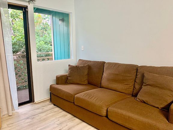 Spacious, renovated, furnished one bedroom condo in South Kihei, wonderful neighborhood, super convenient location, minutes from beautiful, popular Charley Young Beach and Cove Park. Walk to beach, park, supermarket and shops. Modern kitchen with newer appliances, W/D in unit. There are ceiling fans in living room and bedroom, plus a portable A/C. One reserved parking space. Lovely lanai off the living room also has room for storage. The complex has a nice backyard, quiet and peaceful. Long- term rental. 6 month lease. No smoking. No drugs. Small pets considered. Water& trash included. Tenant pays electric, cable&WiFi. Available December 15th, could be earlier. Proof of income, background check and references required. Mahalo. Water & trash included. Tenant pays electric, cable & WiFi