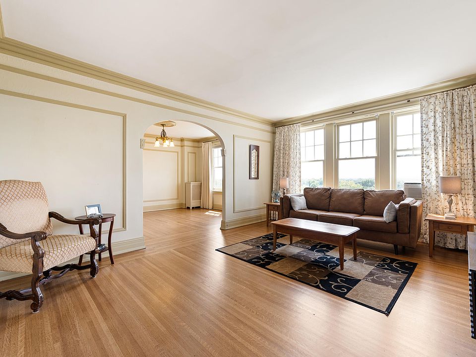 This spacious 2-bedroom condo blends historic charm with thoughtful modern updates. Highlights of the home include breathtaking views and original custom stained-glass windows. Recent improvements include refinished hardwood floors, replastered walls in the primary bedroom and closet, fresh paint in the primary suite and bath, updated bath fixtures with a refinished bathtub, modern kitchen appliances, and new air conditioning units in both the living room and primary bedroom. Built in 1929 by the renowned Joseph & Joseph architecture firm, The Commodore is a hallmark of luxury living in the Highlands. Just one block from Cherokee Park and steps from Bardstown Road's vibrant shops and restaurants, the location offers both charm and convenience. The Commodore provides full-service living with 24/7 staff and professional management. The monthly maintenance fee covers water, sewer, gas, electric, trash removal, elevator staff, building insurance, landscaping, and on-site maintenance. A brand-new automated passenger elevator is being installed, with completion expected in early 2026.