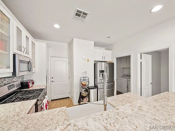 VA approved condo. Private Back yard, Elegant modern remodeled kitchen with stainless steel appliances and farmhouse sink, remodeled master bath and hardwood floors in Belleza at San Miguel Ranch. Resort like community facilities, pool, clubhouse, gym, BBQ area, secure little kids’ area, water fountains, tennis courts and basketball. Just a short walk to Mount Miguel Park with baseball, hiking and bike trails and a dog park. Enjoy East Chula Vista Award winning schools, parks and shopping. Just 25 min to NAS San Diego and Downtown San Diego