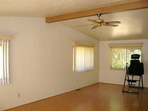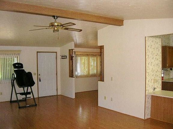 Don't let the square footage or year built fool you! This home feels big and is in great condition. Detached 2 car garage featuring attached work shop & full bath w/ shower. Covered front porch, enclosed back porch, sliders to small deck off of master suite with walk-in closet. Newer roof & interior/exterior paint. Should go FHA. The one acre parcel is all level and usable & has fruit trees too! Vaulted ceilings & open floor plan make this home bright & cheery.