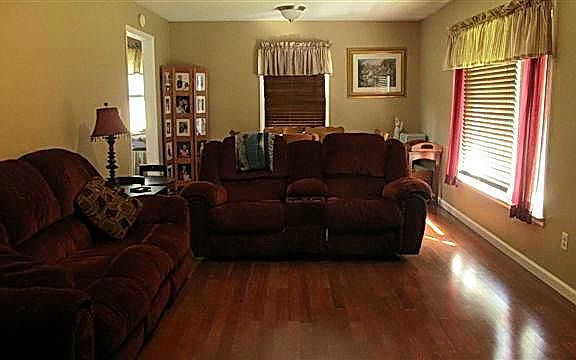 Spacious 3 bdrm 2.5 bath. Located on an acre lot. 2 car garage. Hardwood and tile flooring. Fabulous kitchen. Includes refrigerator, stove, dishwasher.Stone patio in back plus a deck. Partially fenced yard. Playroom and office.